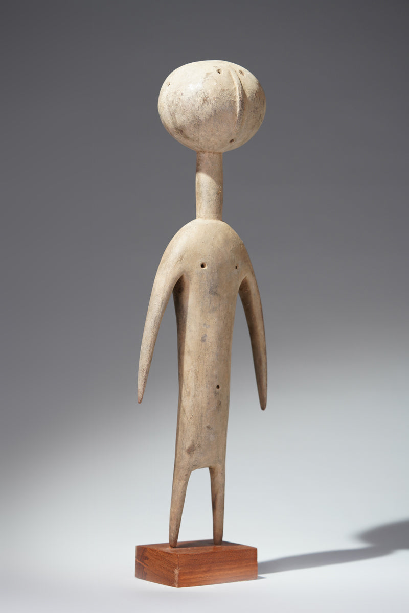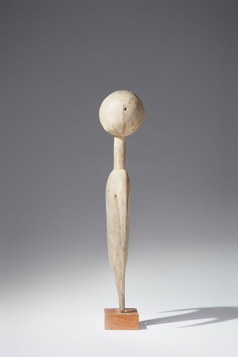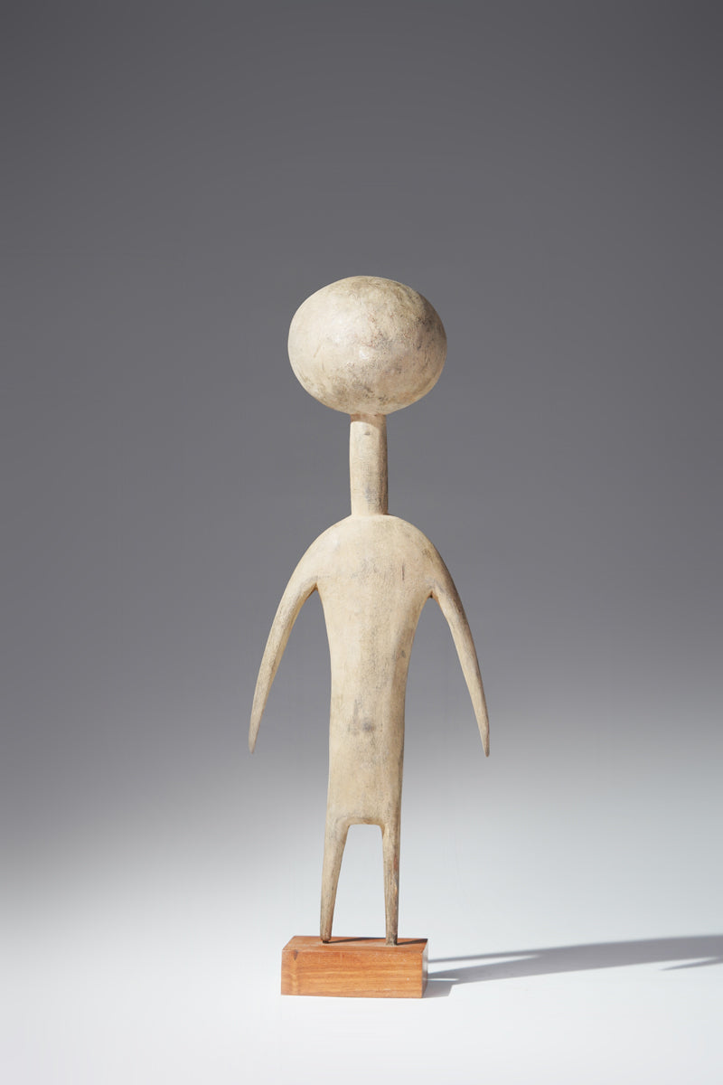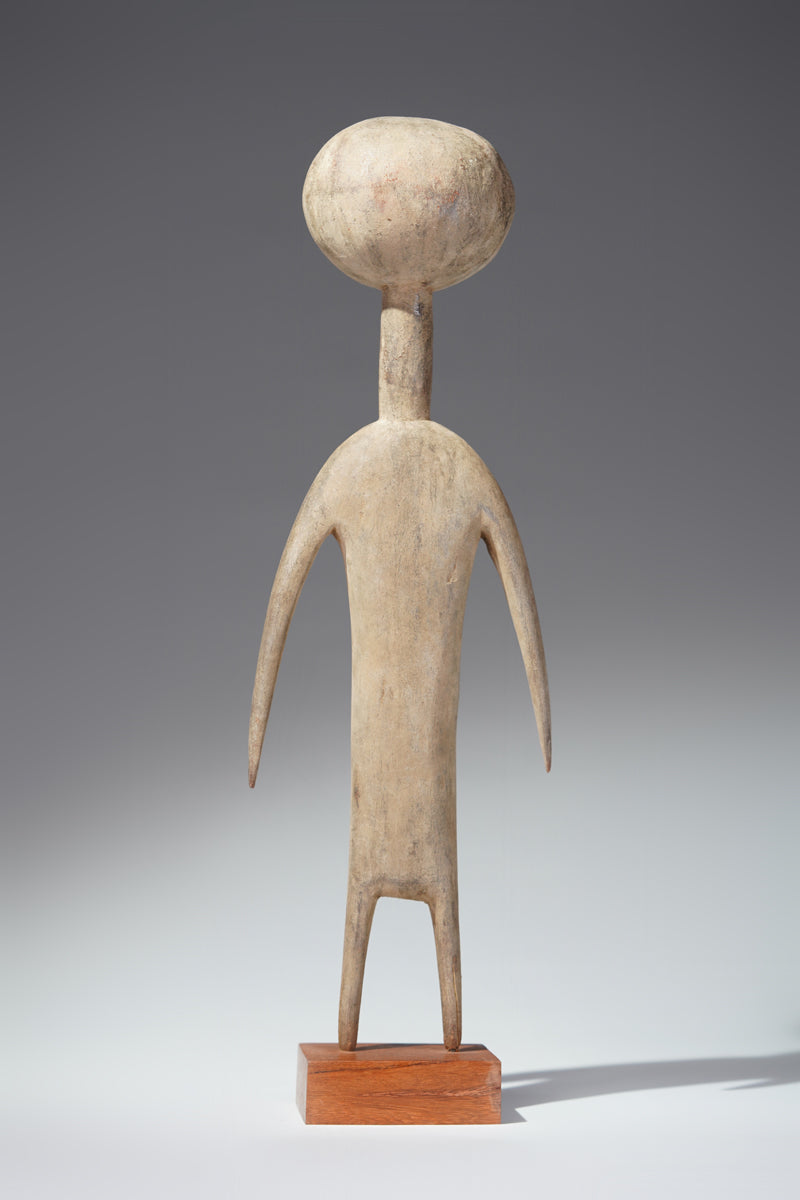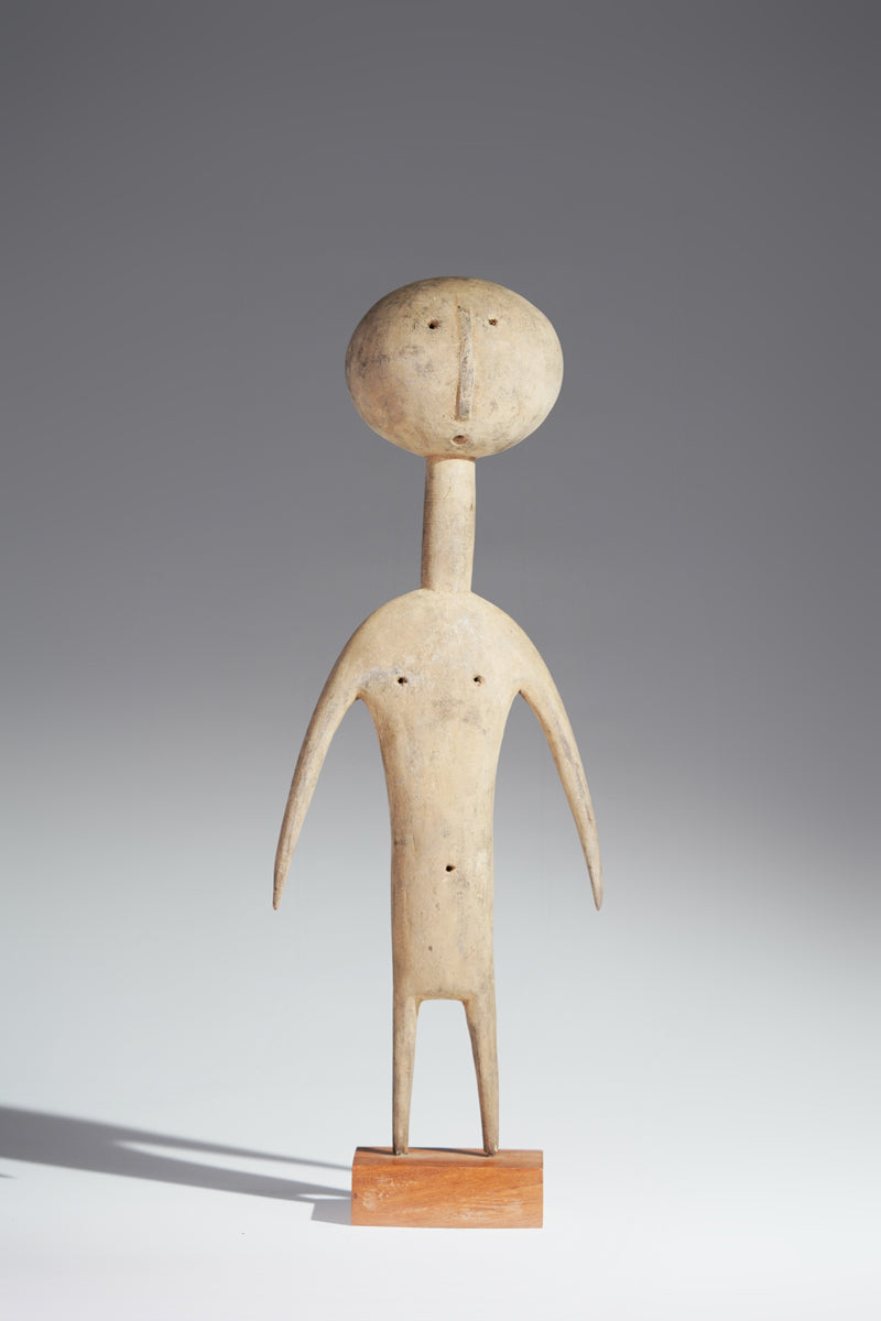 A PramPram couple, Ghana, elongated body with tapering limbs, a spherical head, eyes, ears, navel and nipples are represented as indentations, the nose in the shape of a small ridge, collected from Baba Sylla., Accra, Ghana.