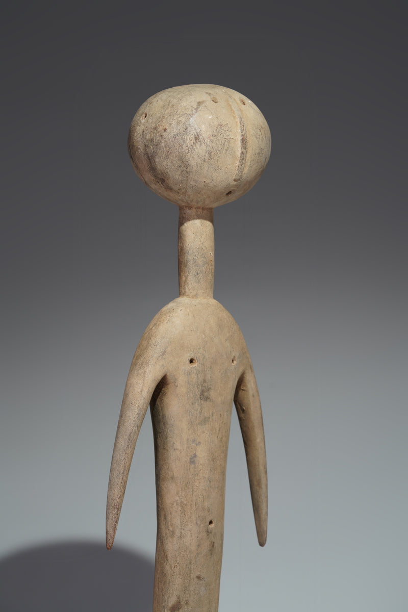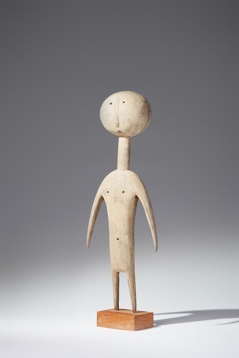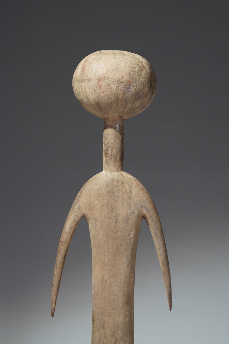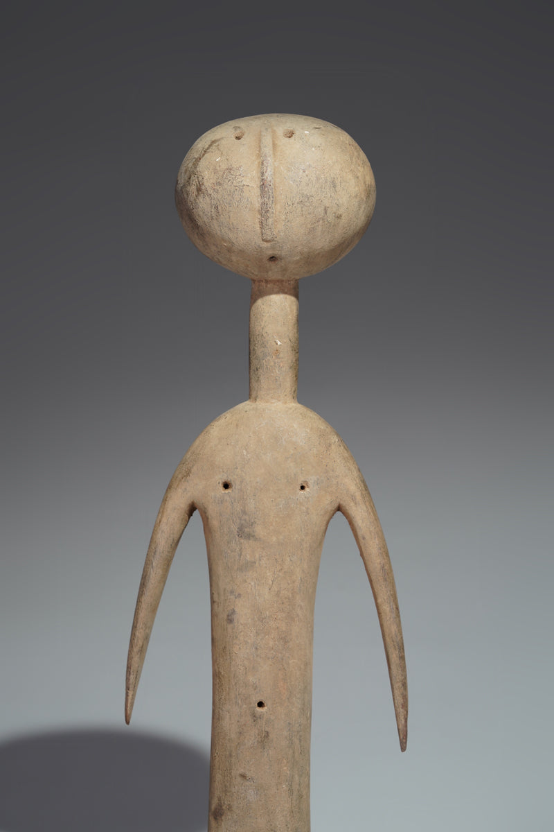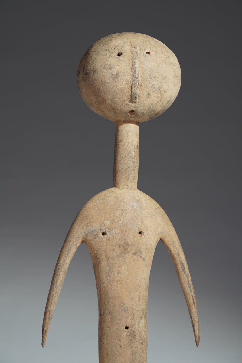 A PramPram couple, Ghana, elongated body with tapering limbs, a spherical head, eyes, ears, navel and nipples are represented as indentations, the nose in the shape of a small ridge, collected from Baba Sylla., Accra, Ghana.
