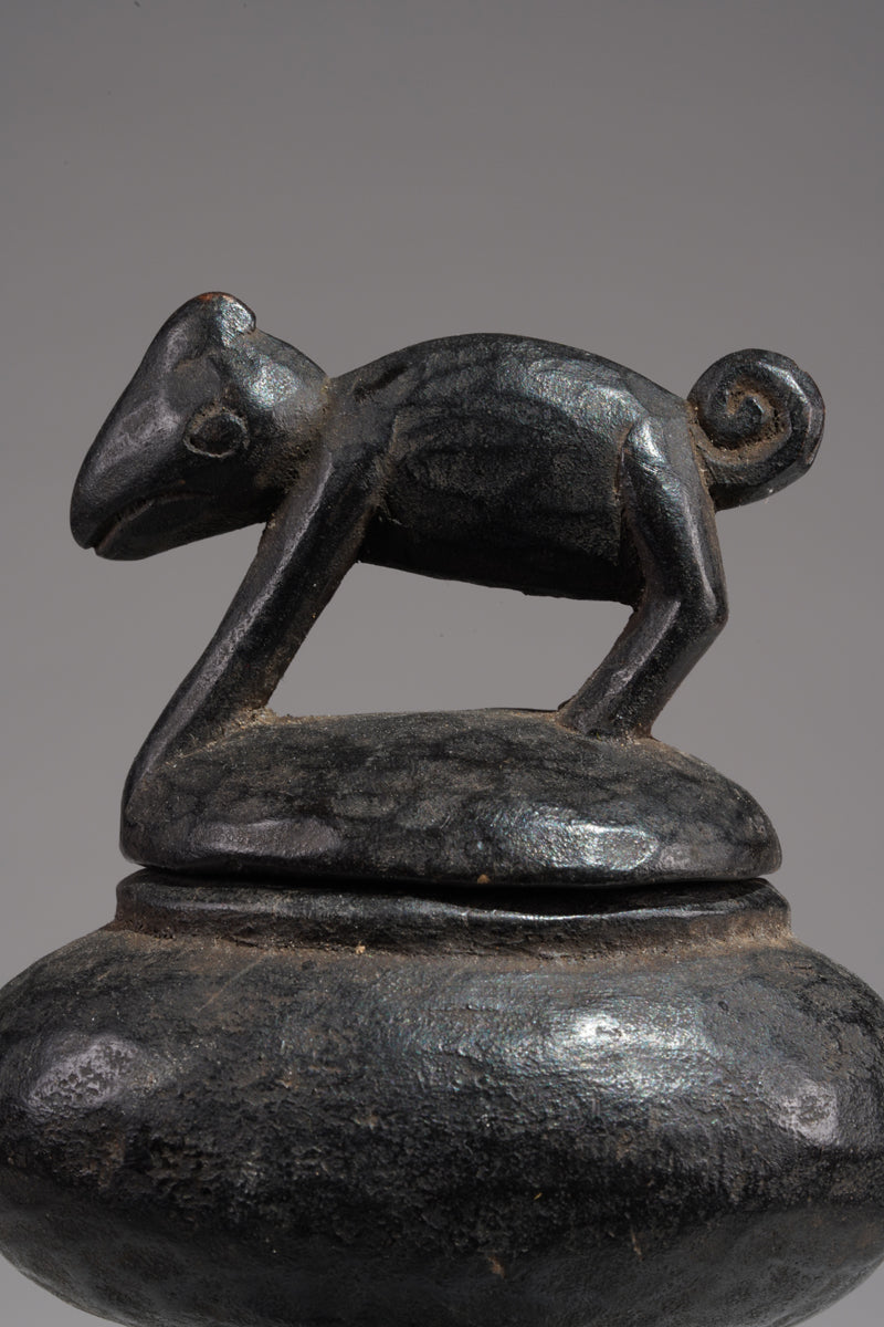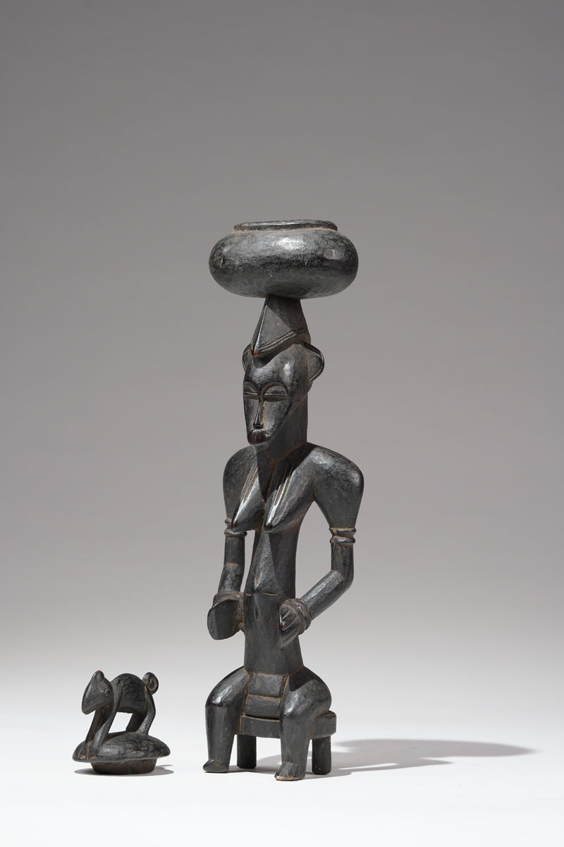 A Senufo “bowl keeper” sculpture, Cote d’Ivoire. Signs or ritual use and age. Certificate of origin and provenance.