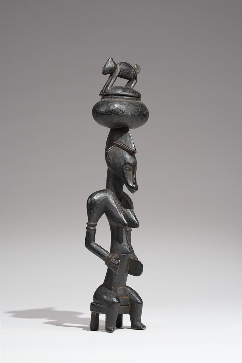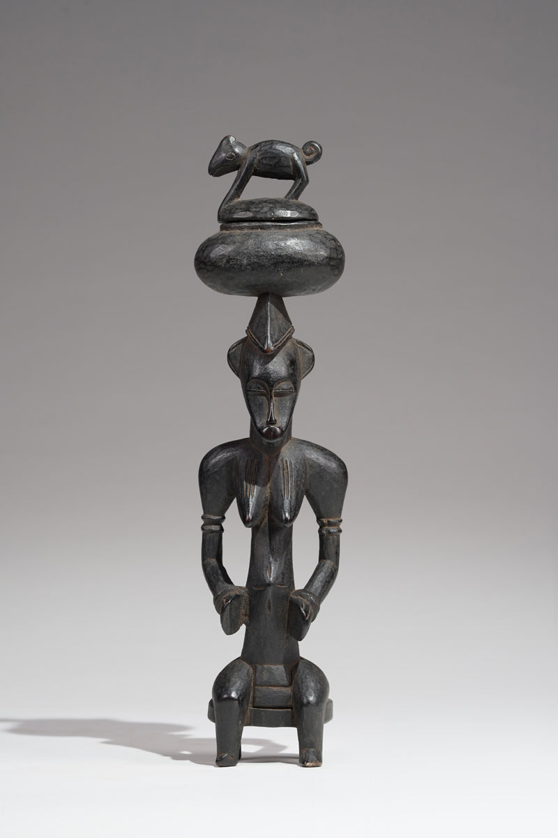 The Senufo people are renowned for their woodcarving traditions, which are deeply rooted in spiritual, ritualistic, and social functions. Senufo "bowlkeeper" sculptures—also known as bowl-bearer or bowl-holder figures—are a distinctive form of ritual art from the Senufo people of northern Côte d’Ivoire, particularly the Korhogo region. These figures typically depict a female figure carrying a bowl on her head or hands, symbolizing offerings, ancestral communication, or spiritual receptacles.