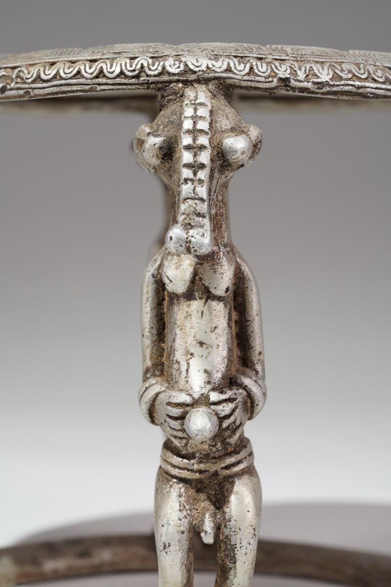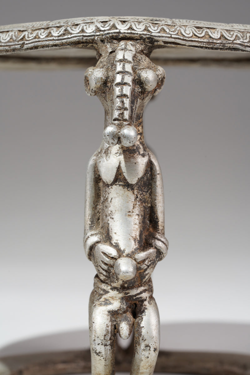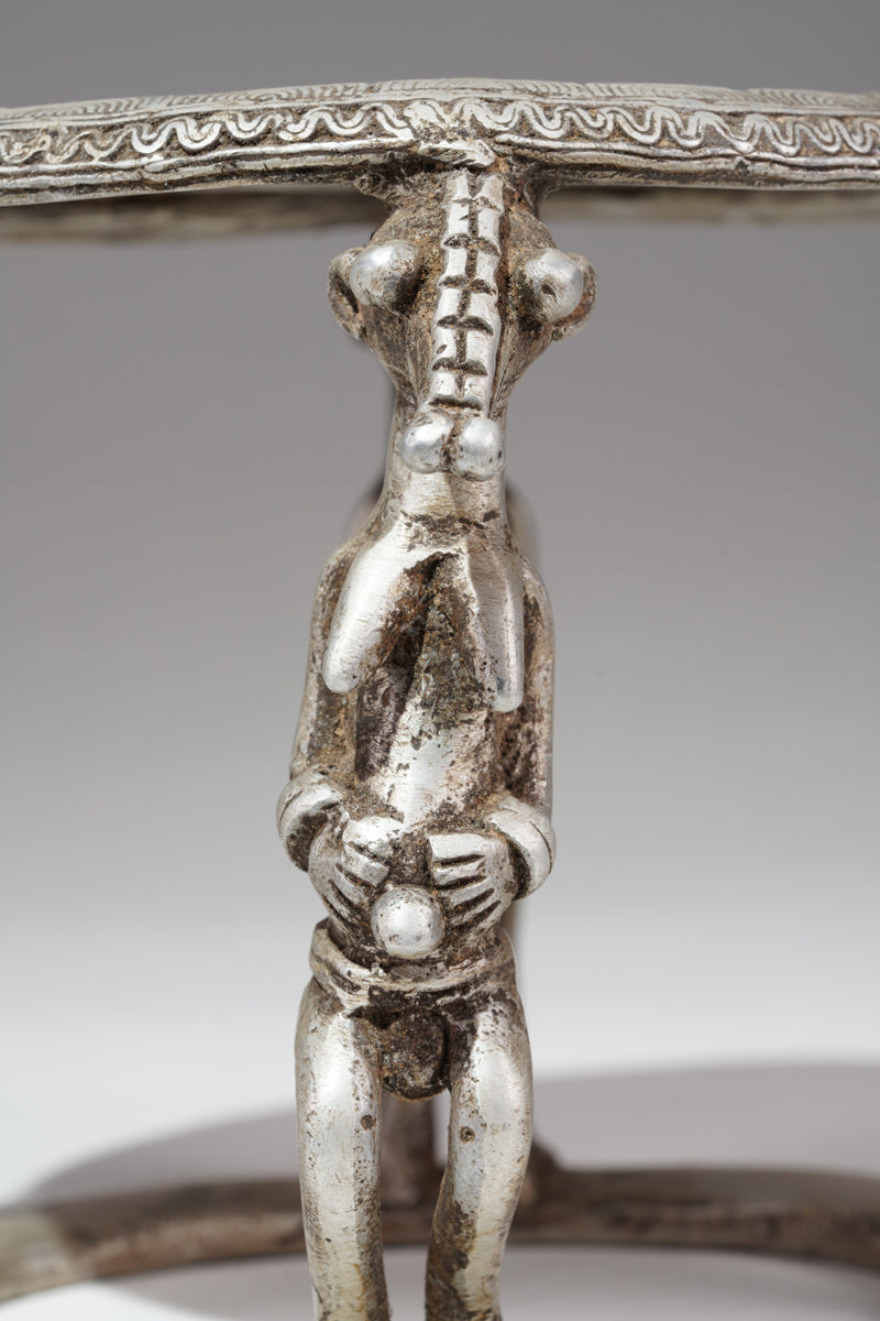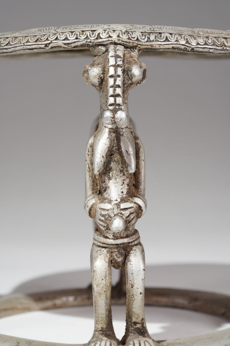 A Lobi/Gan circular aluminium tabouret supported with four male and female figures.