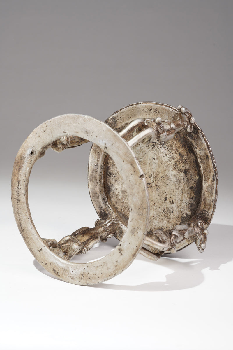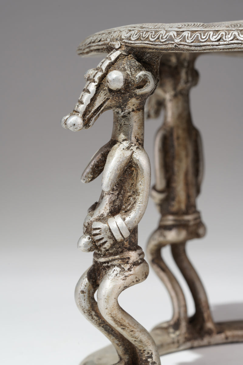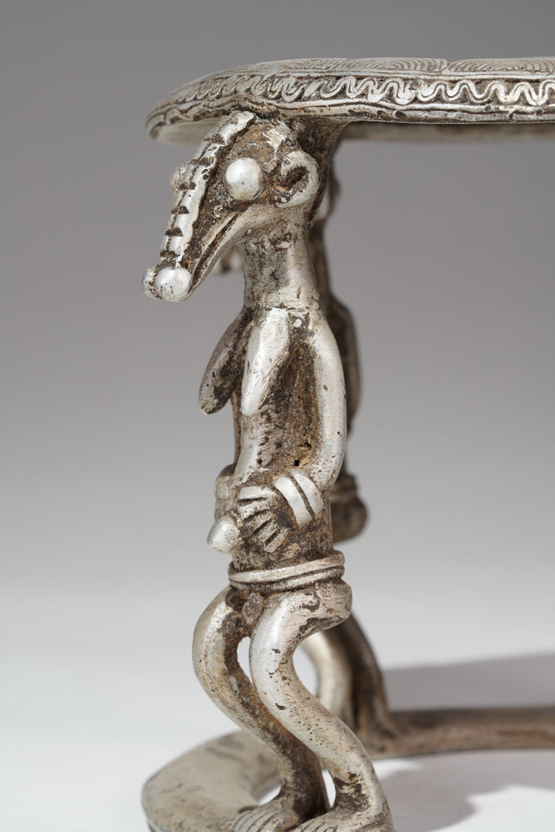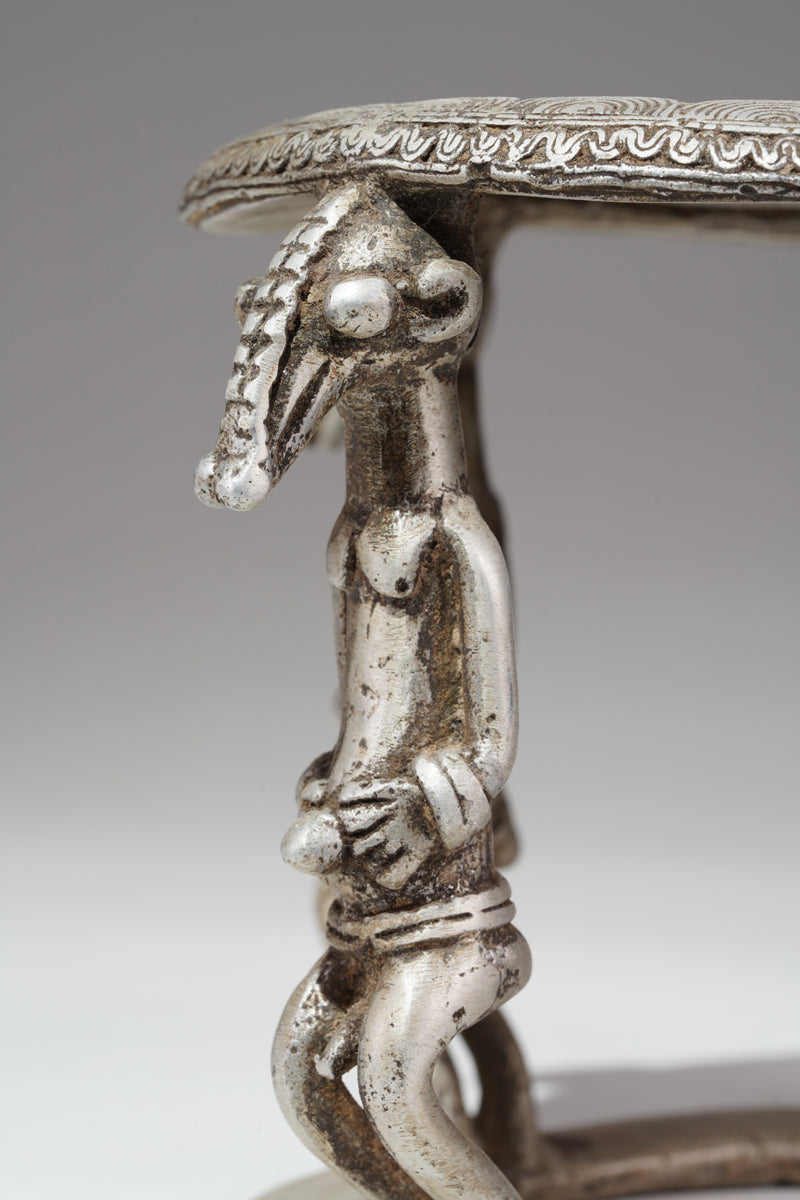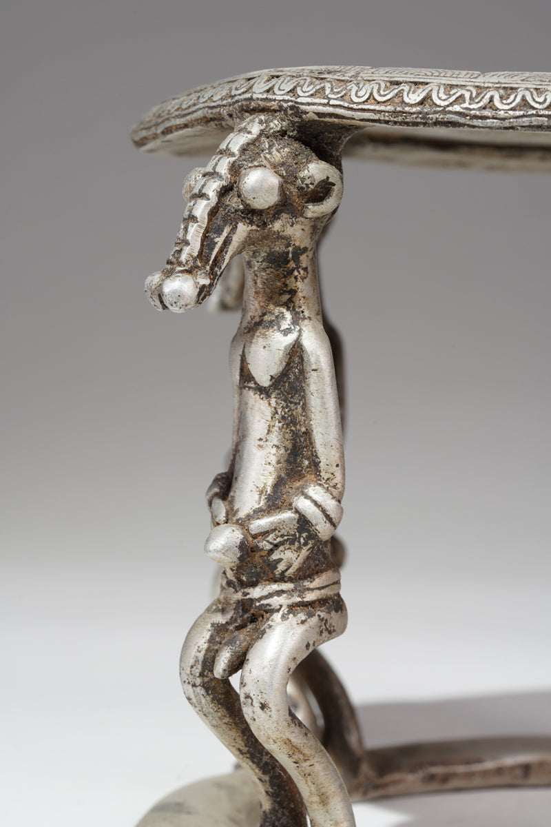 A Lobi/Gan circular aluminium tabouret supported with four male and female figures.