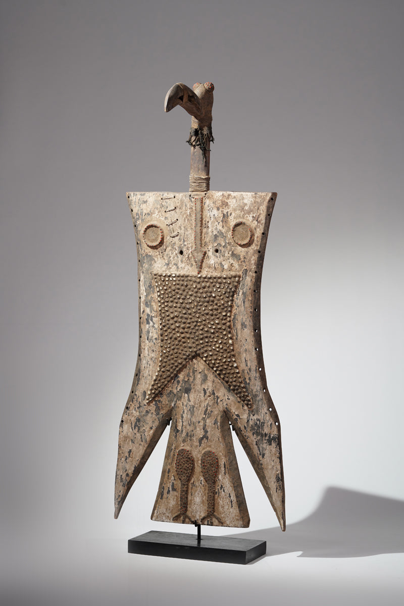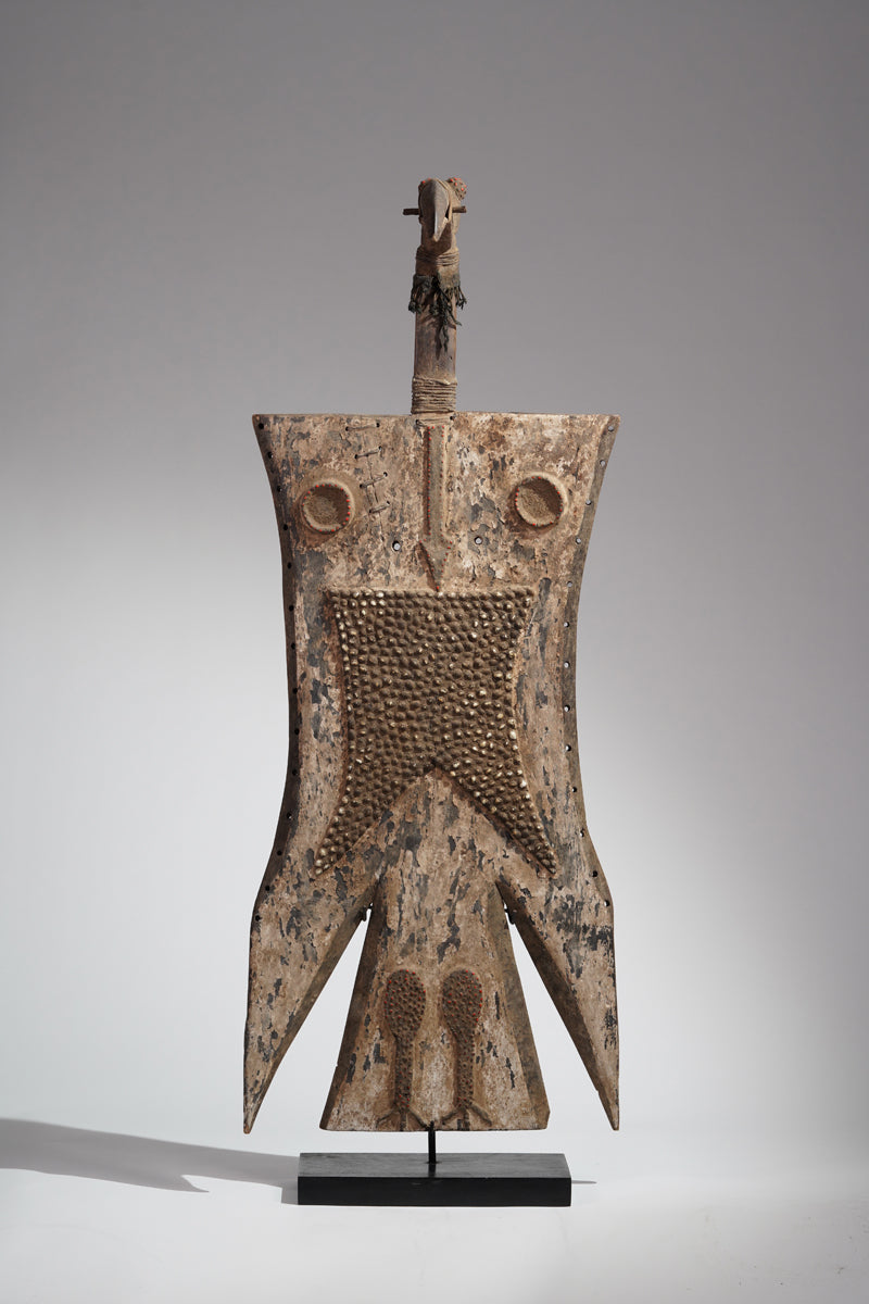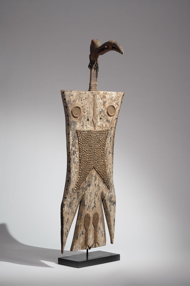 A Toussian plank mask, Burkina Faso, collected in the region of Banfora, signs of ritual use, certificate of origin and provenance.