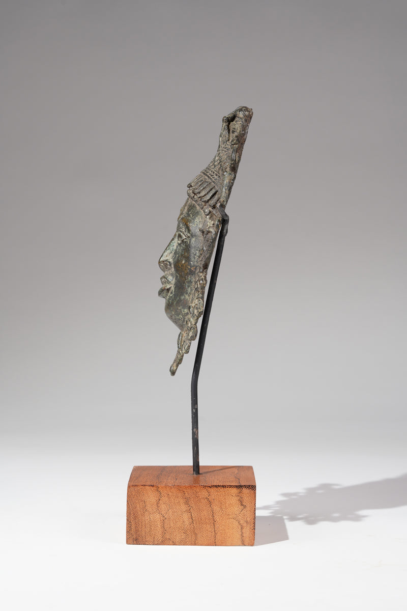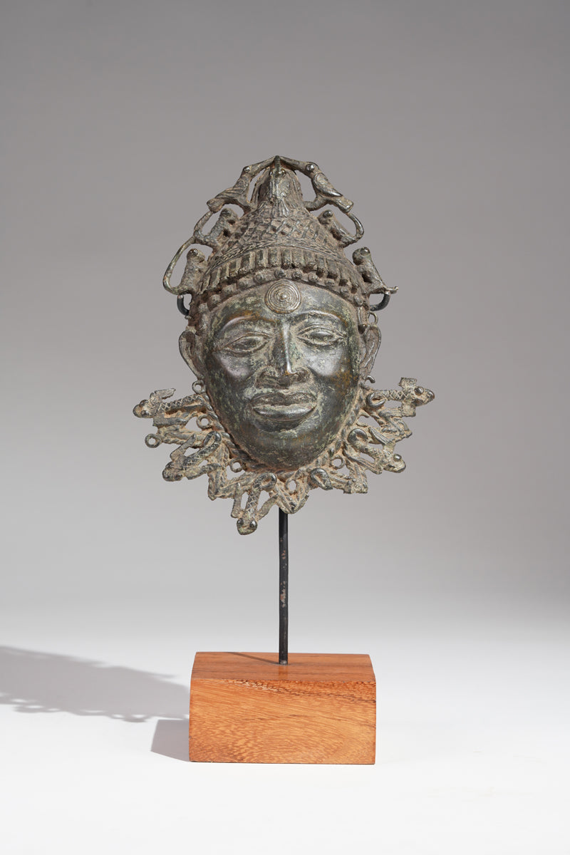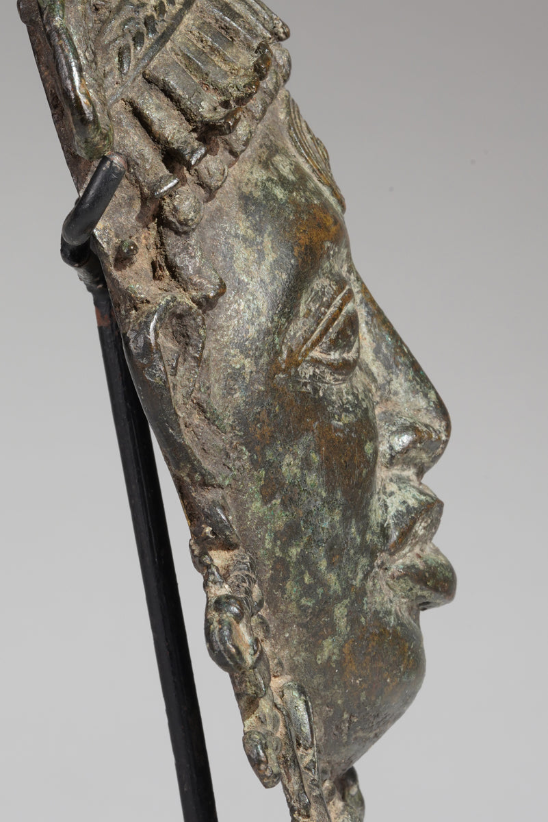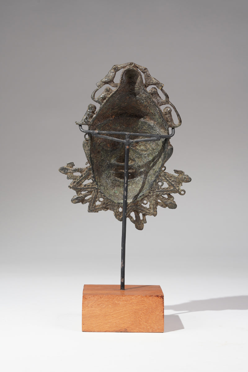 A Uhunmwu-Ẹkuẹ (pendant masks) also callewd Benin hip mask with a human face. Without stand.