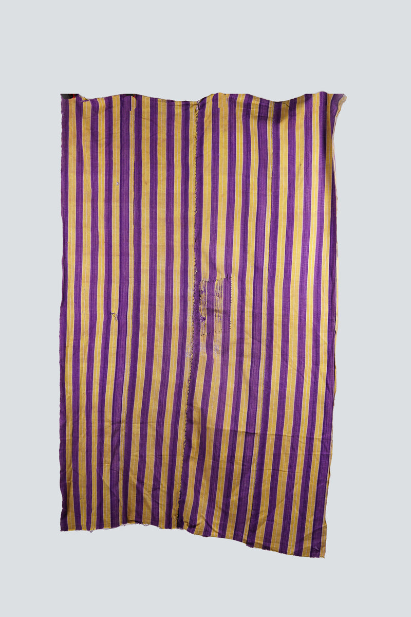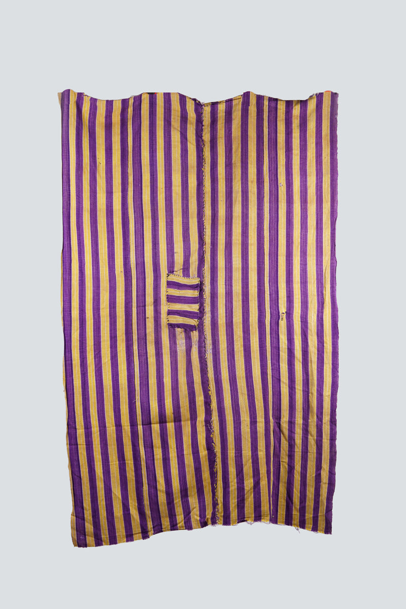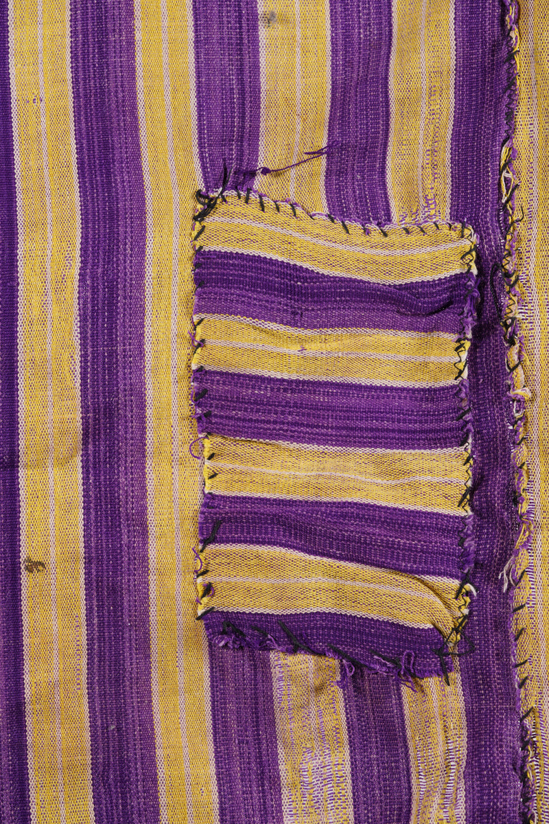A vintage fabric, Ivory Coast, resist dyed, handspun, stripwoven, with an authentic repair in the center, around 1970.