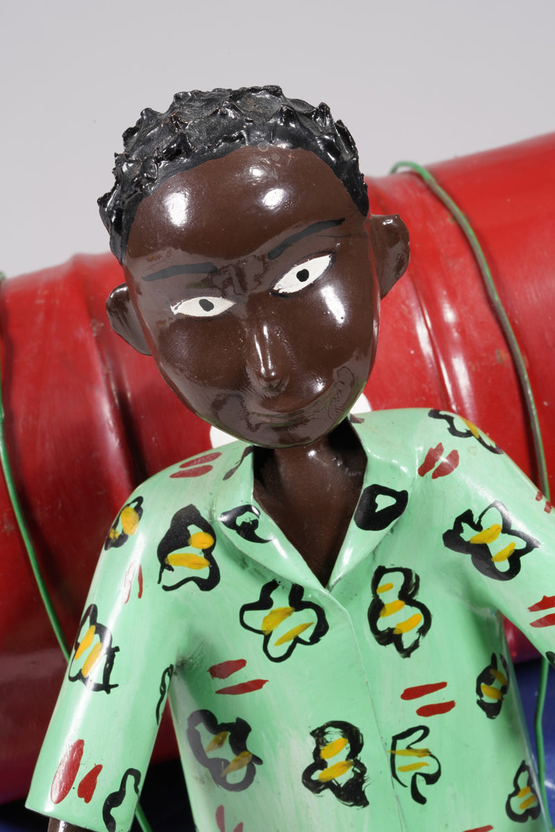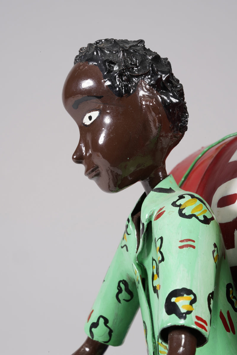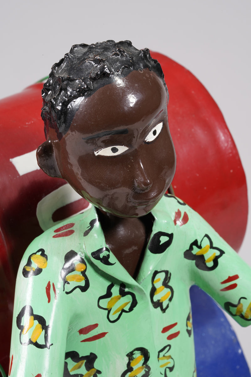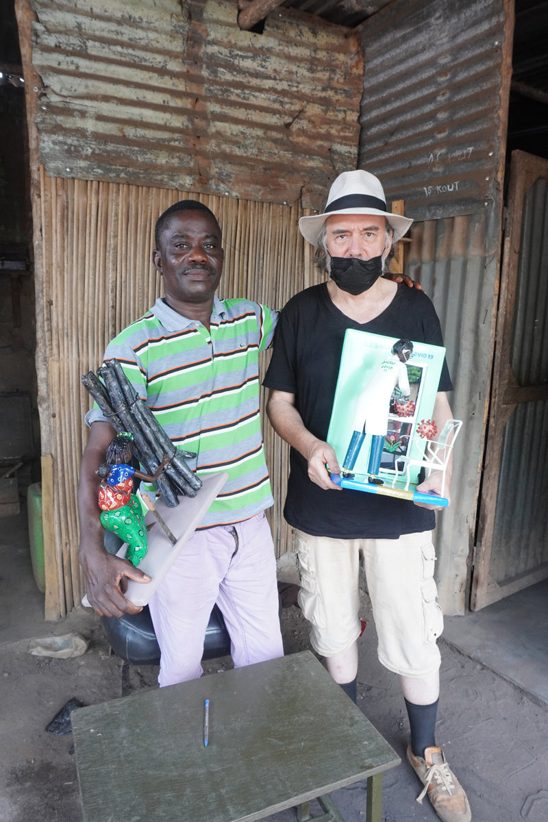 The artist comes from a large Ewe family and grew up with three half brothers and four half sisters in Vogan, near Lomé. His environment was shaped by agriculture, and his parents also worked in this field. The town of his birth, Vogan, is also shaped by the Vodoon cult, which - next to the Christian religion - is still very important today. Ahadsi learned the trade of coachbuilder until he opened his own workshop;