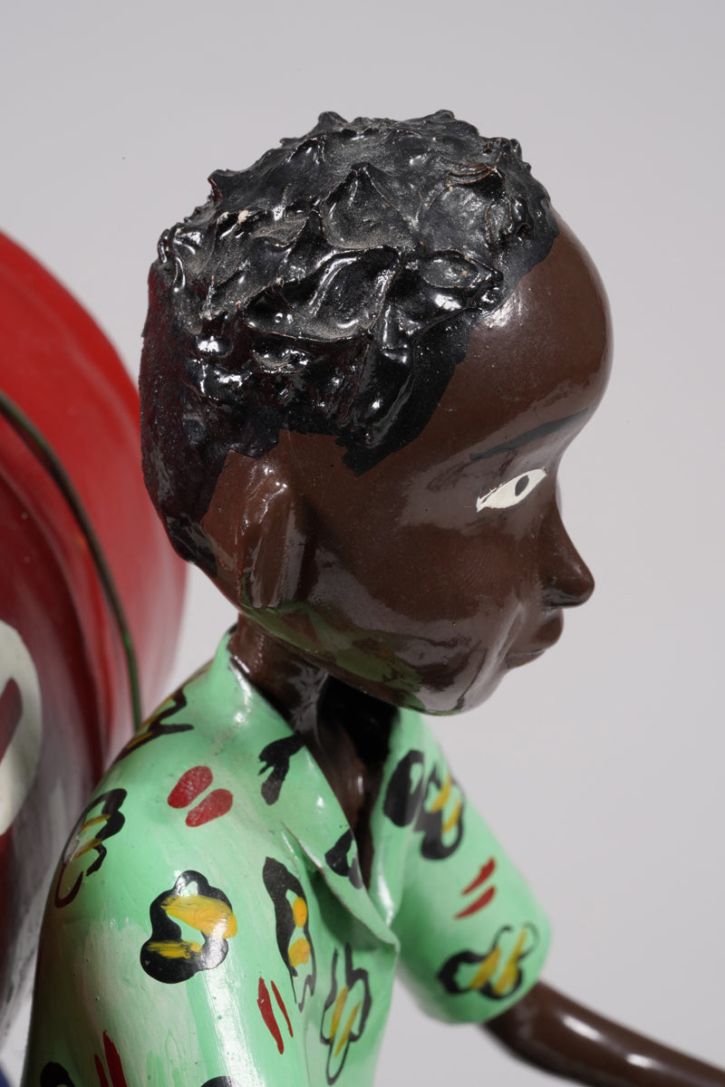 Through the knowledge and skills of sheet metal and metalworking at a highly professional level, which he was able to develop and acquire autodidactically during his long training period, and his fondness for making tin figures since childhood, he began using durable and high-quality materials such as body panels to implement his figures, especially since the special tools required for this were now available to him for the first time.