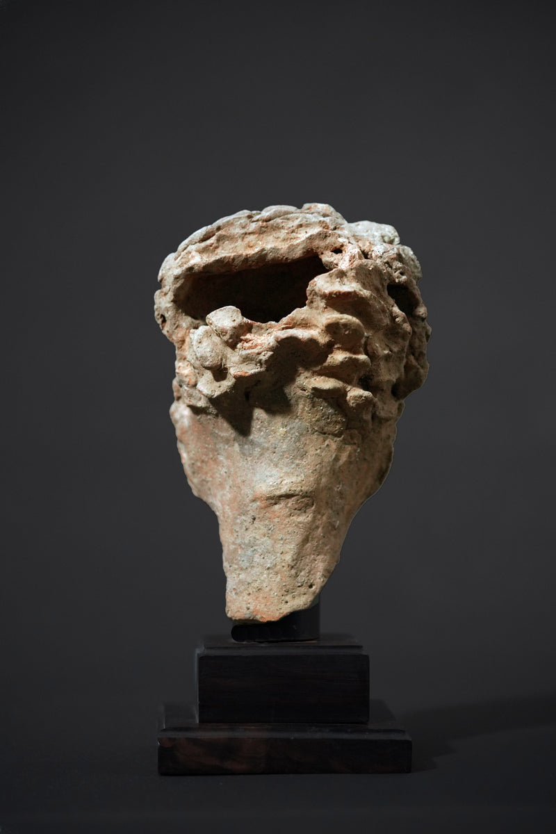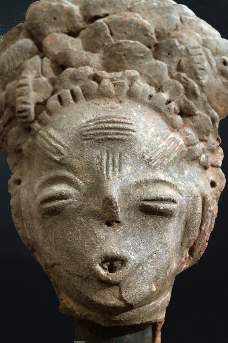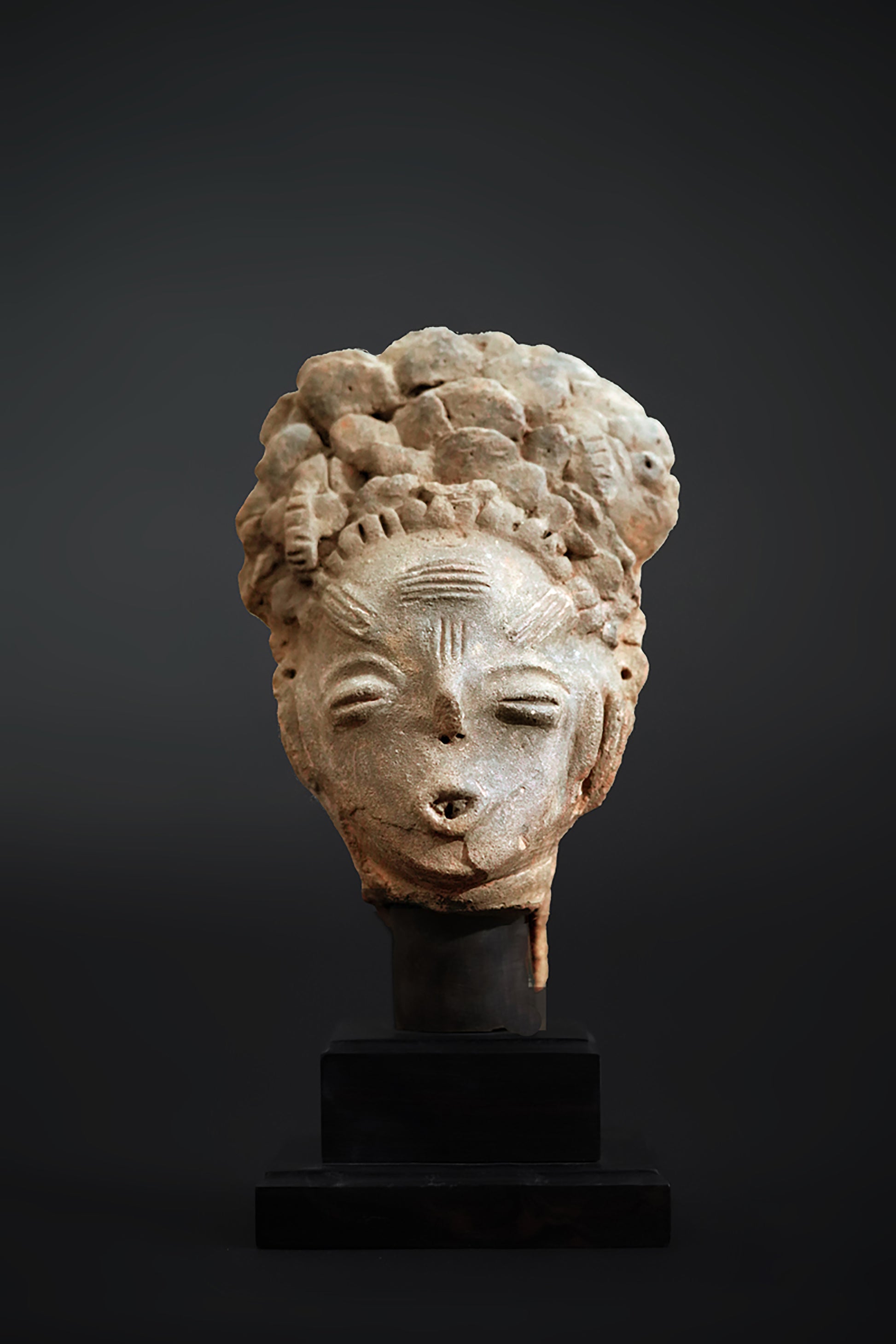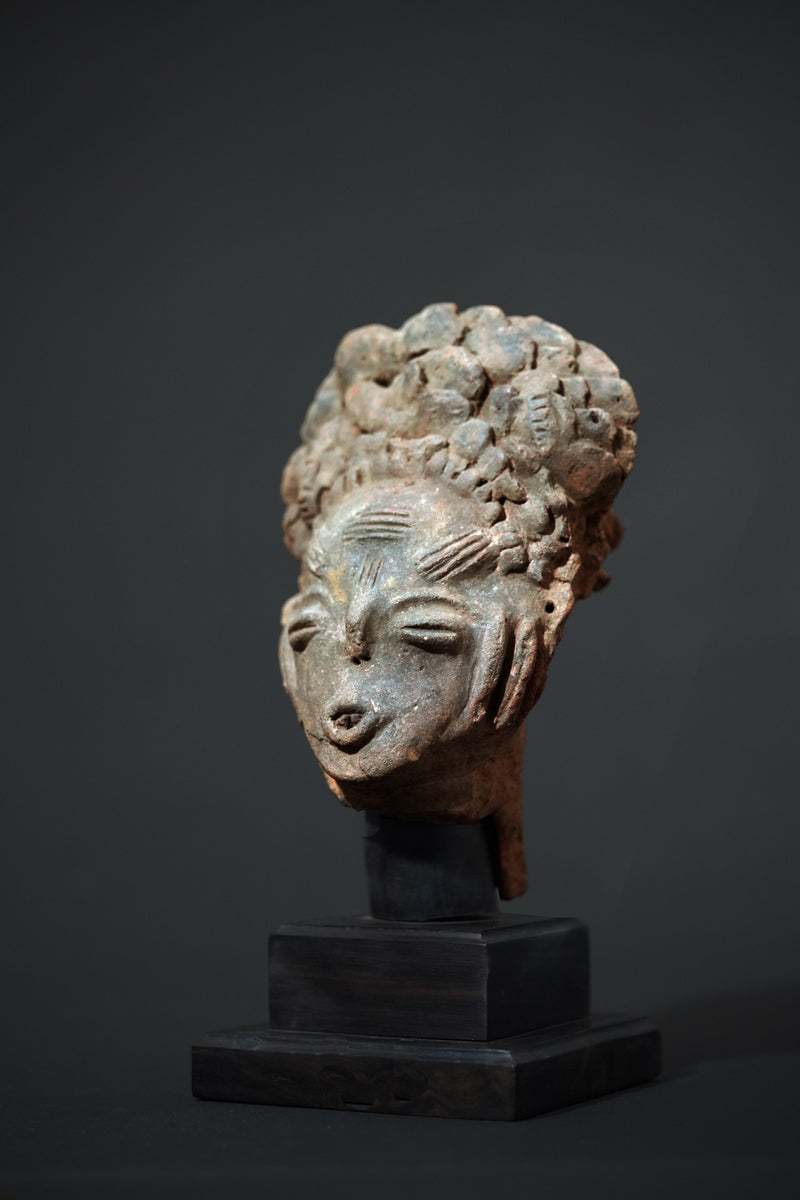 An Akan terracotta head with a remarkable headdress, provenance: Abdulaye Ousmane, Lomé, Togo.