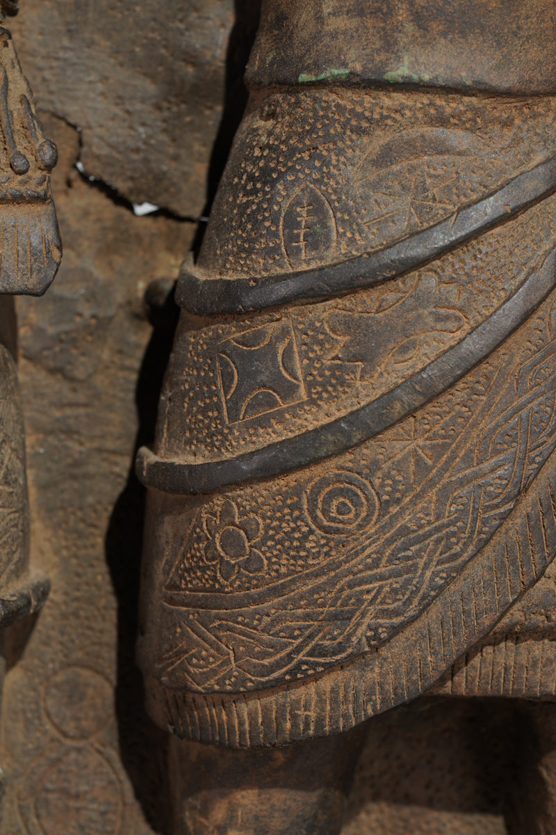 Ama is a pictorial combination of figures that has a historical explanation or is a visual representation of a historical event. Ama had a mnemonic purpose, aiding one to recall the events or persons represented in the artwork. Benin oral traditions are popularly transmitted in the form of commemorative festivals, stories, plays, songs, poems, riddles, proverbs and other forms of oral literature. Ben-Amos (1980:28) observed the existence of over nine hundred known plaques which provided a testimony to court life at the time of Ọba Esigie, considered ‘a sort of pictorial record of events in Benin history, an aid to memorizing oral traditions’.