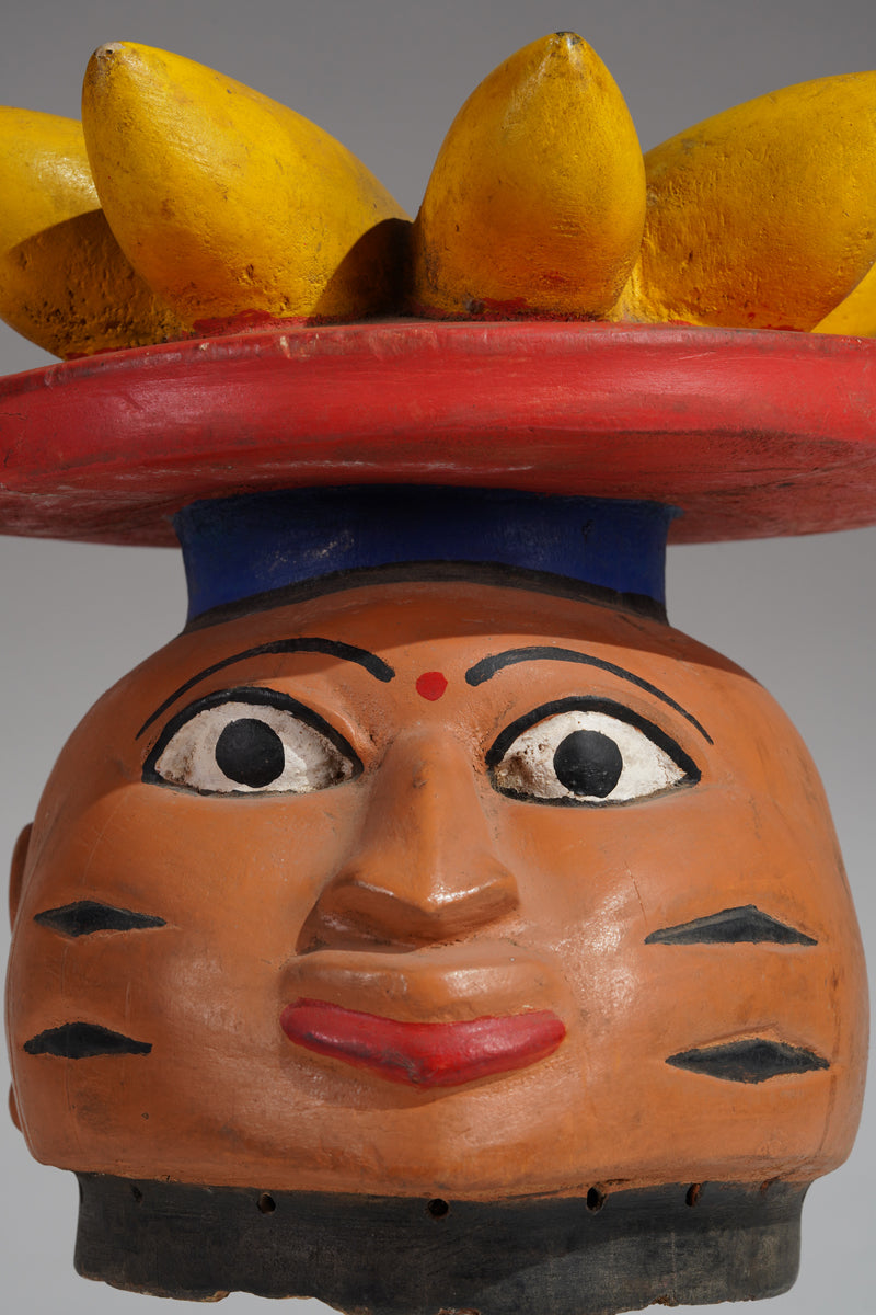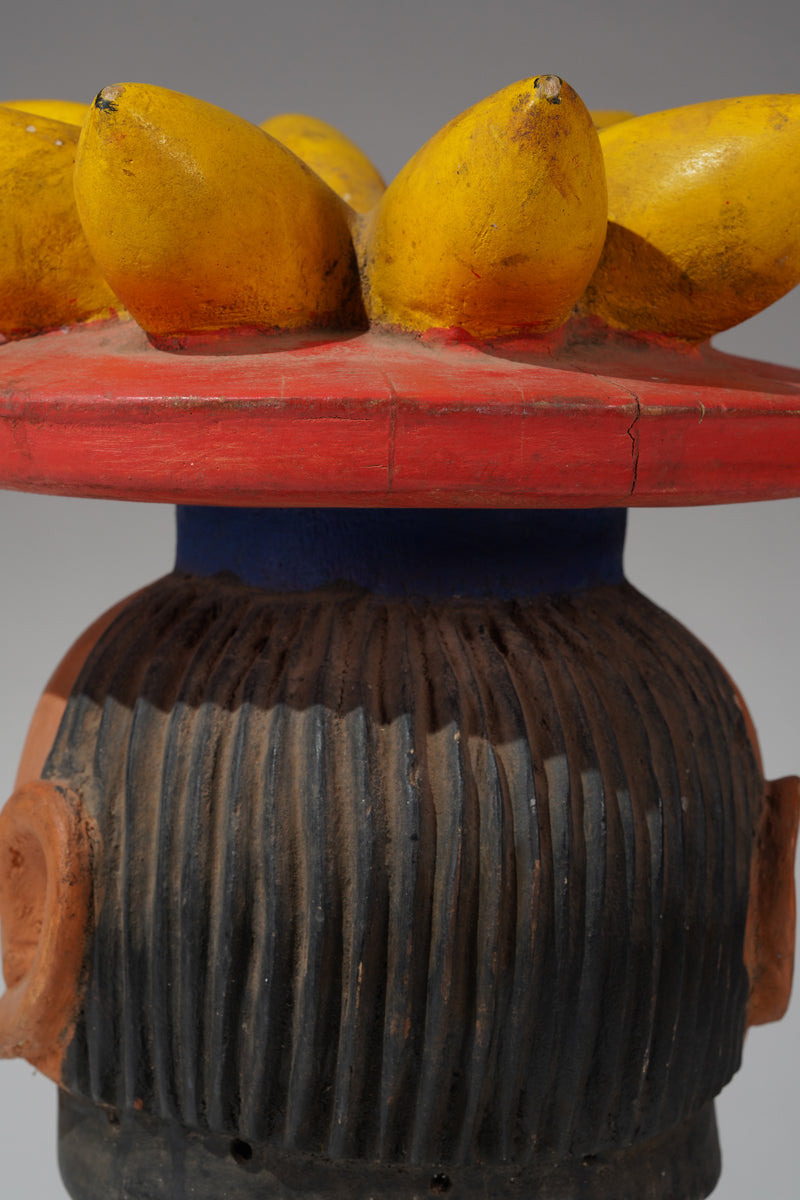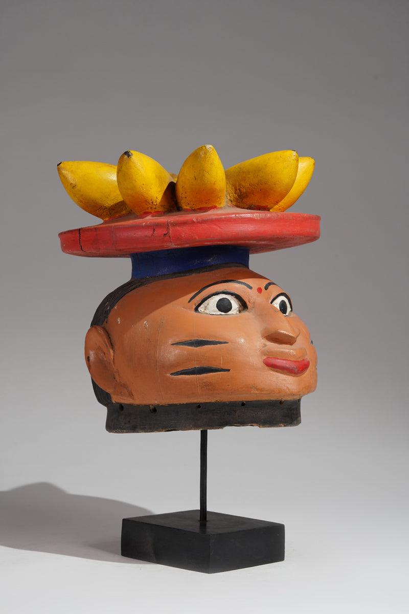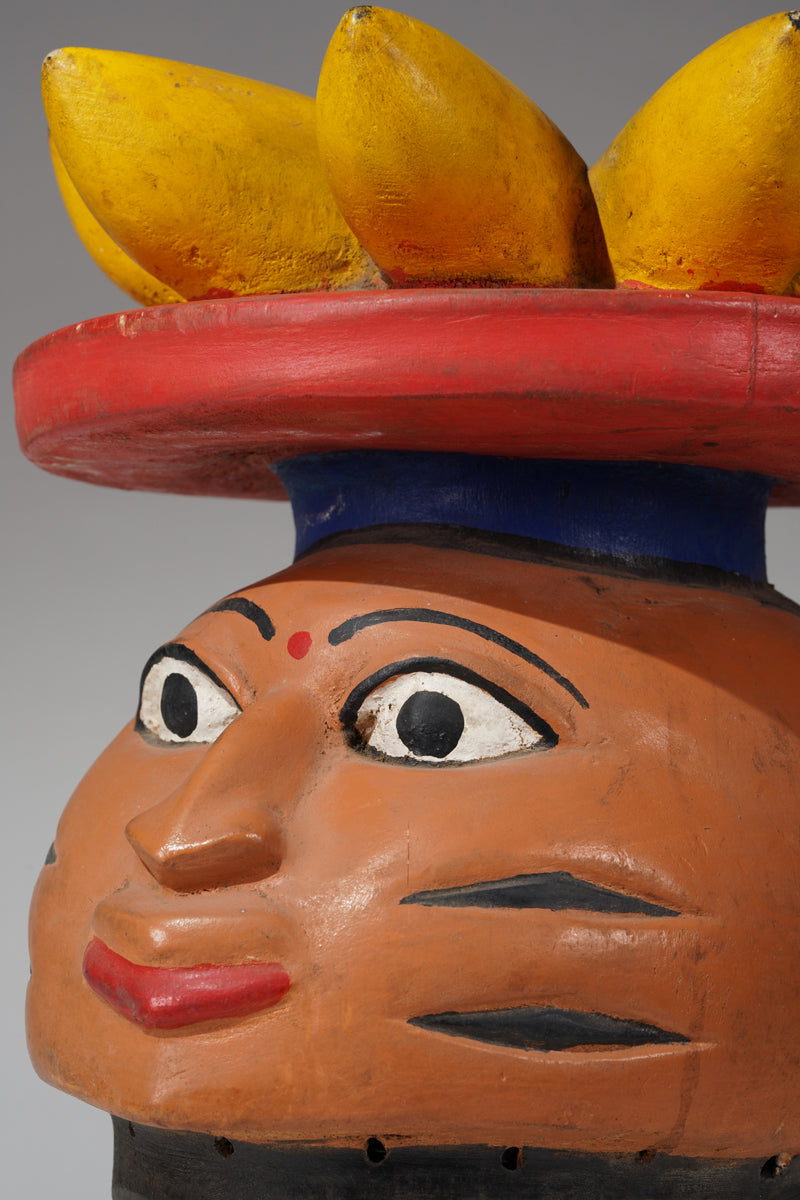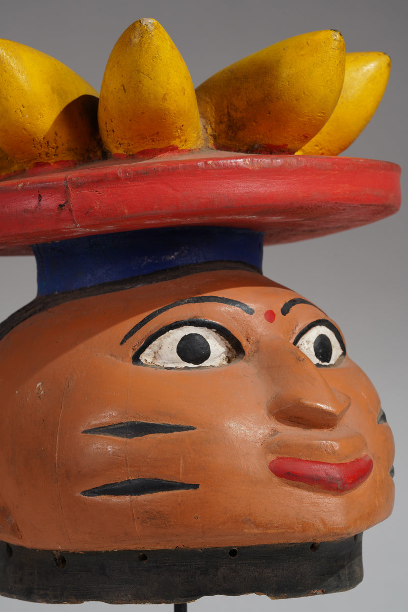 The Gelede takes place every year after the harvests, at important events and during drought or epidemics and is characterized by carved masks, dances and chants, sung in the Yoruba language and retracing the history and myths of the Yoruba-Nago people. The ceremony usually takes place at night on a public square and the dancers prepare in a nearby house. The singers and the drummers are the first to appear. They are accompanied by an orchestra and followed by the masked dancers wearing splendid costumes. There is a great deal of preparatory craftwork involved, especially mask carving and costume making. The performances convey an oral heritage that blends epic and lyric verses, which employ a good deal of irony and mockery, supported by satirical masks. Figures of animals are often used, such as the serpent, a symbol of power, or the bird, the messenger of the “mothers”. The community is divided into groups of men and women led by a male and a female head. It is the only known masked society, which is also governed by women. Although the Gelede has nowadays adapted to a more patriarchal society, the oral heritage and dances can be considered as a testimony of the former matriarchal order.