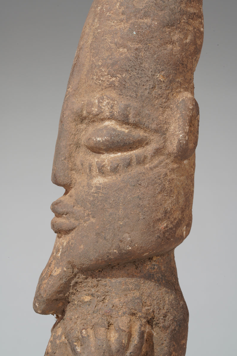 There is no literature on these specific figures; they are likely among the masterpieces of the otherwise numerous Tellem/Dogon stone figures. Their age is unlikely to be verifiable, but the location of their discovery in the Tellem caves could provide an indication of their great antiquity. Since the 1950s, there have repeatedly been members of the Dogon who climbed into the Tellem caves under dangerous conditions and lowered their finds to the foreland of the Fallaise. What the Dogon did with their Tellem objects, whether they were used ritually, is unclear. The figures were last collected in the Sanga area at the foot of the Fallaise. There are said to have been no artifacts in the Tellem caves since the 1970s.