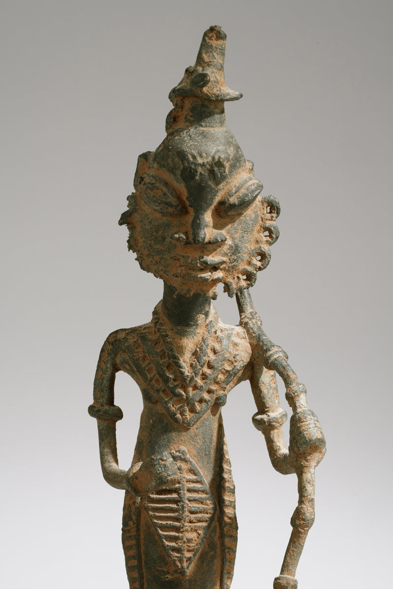 Such a sculpture would likely have been used in ritual settings, perhaps placed in shrines, ancestral groves, or meeting houses associated with the Ogboni lodge. It could also have functioned as a visual mnemonic for oral histories and spiritual teachings passed down within the society. The bronze horseman thus acts not only as a work of art but as a locus of memory, authority, and sacred presence. Its continued study contributes to a deeper understanding of how form, material, and iconography intersect within Yoruba systems of belief and power.⁴