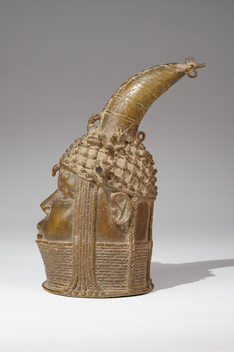 After the death of an Oba, an altar was built for him in a closed courtyard of the Benin palace. One of the most important objects on these altars were memorial heads of the deceased cast from brass.A carved ivory tusk once rose from the calotte of these commemorative heads. Extensive rituals and regular sacrifices at this altar by the successor confirmed his ties to the royal ancestors and increased his spiritual power. See Digital Benin, the Uhunmwu-Elao commemorative heads.