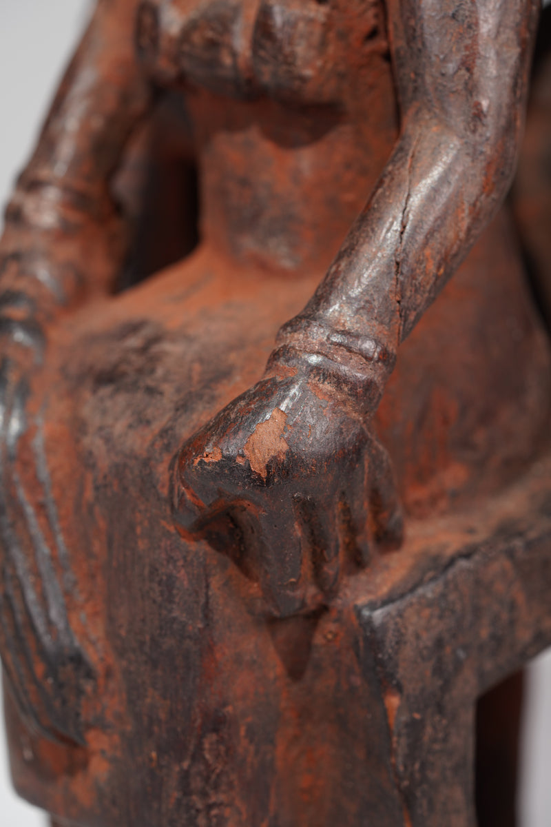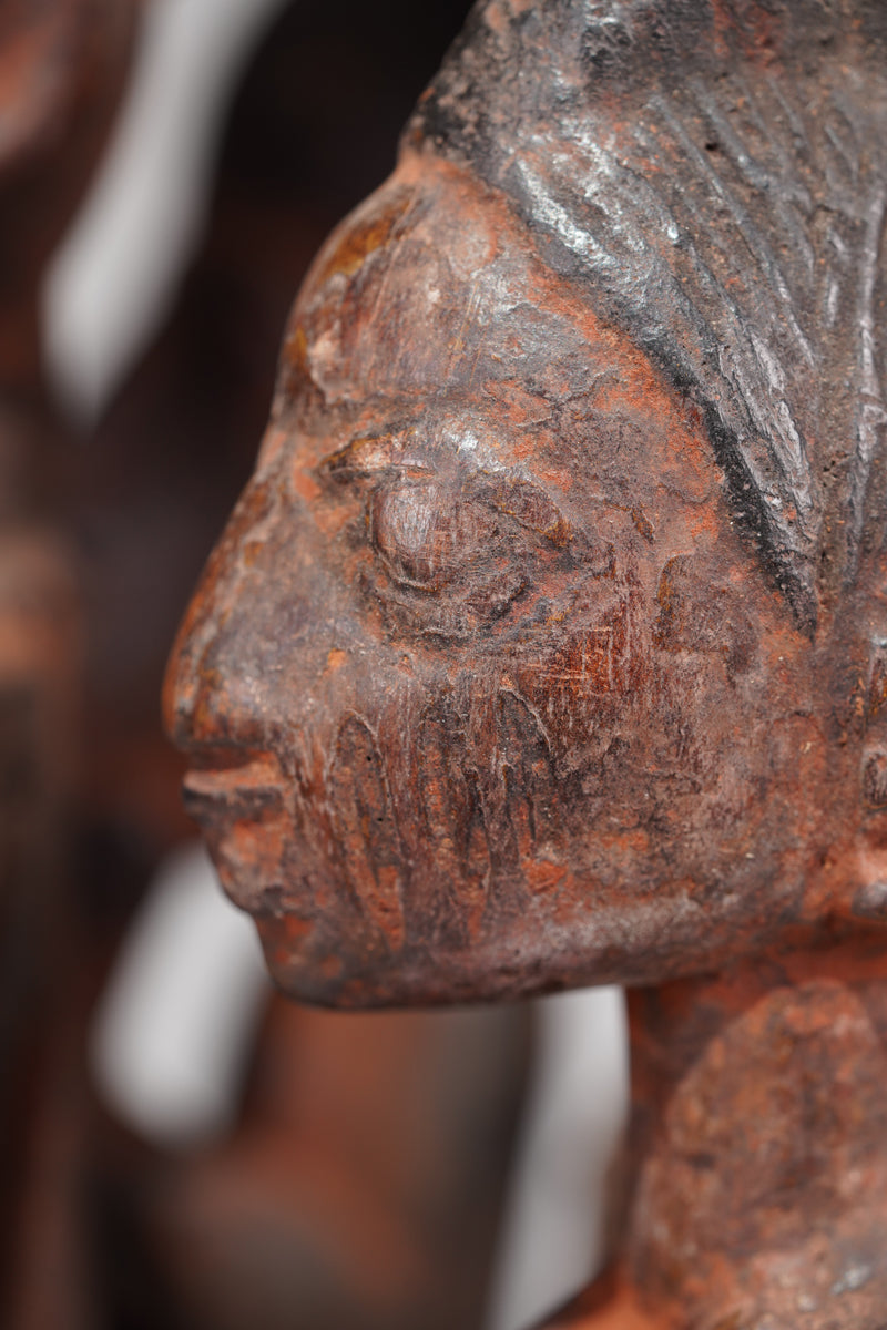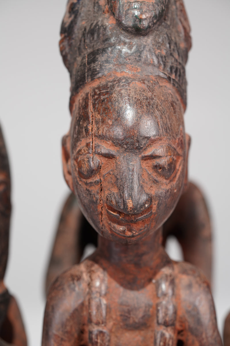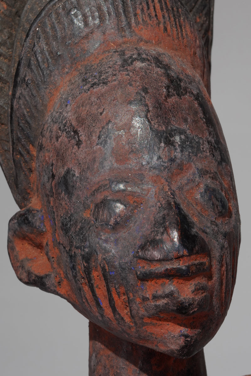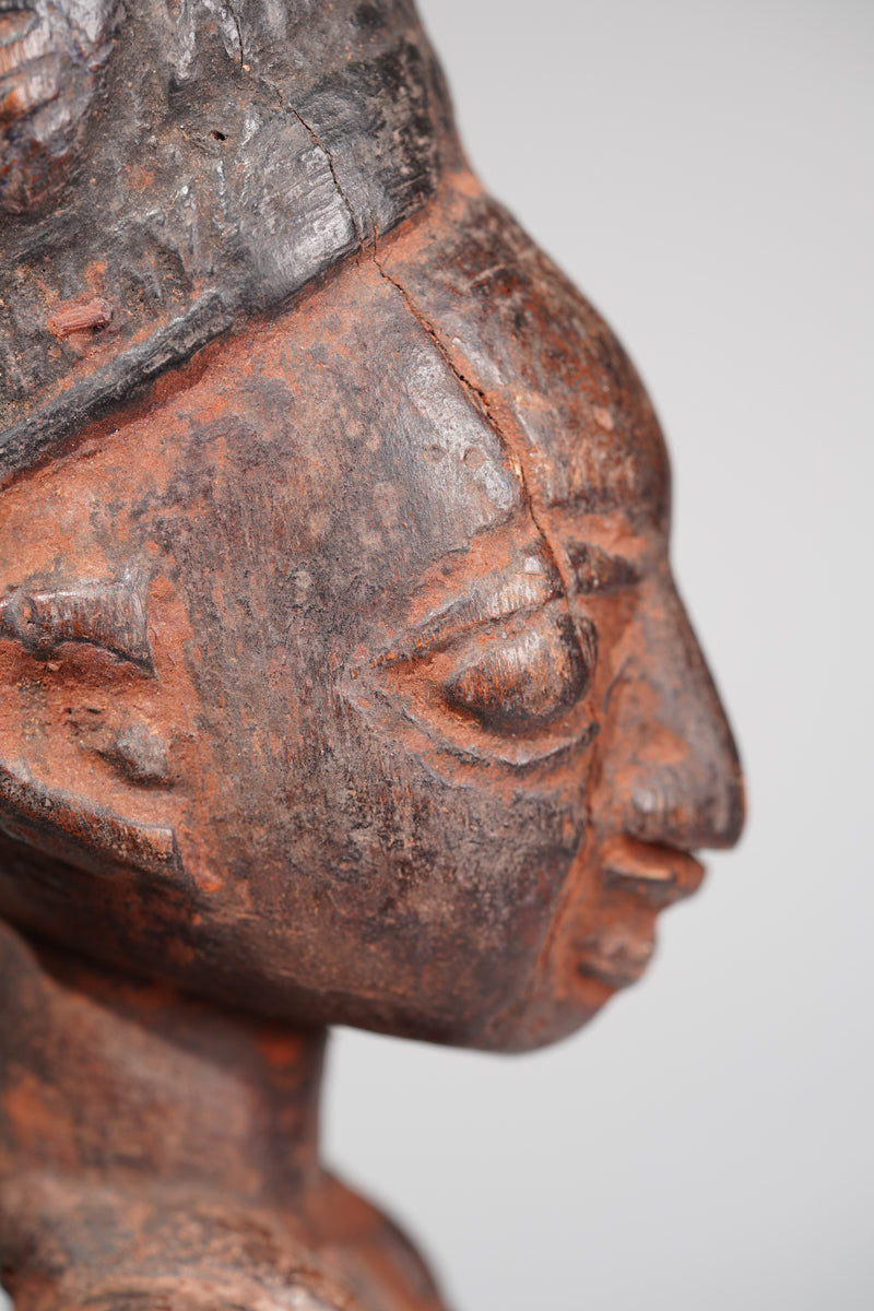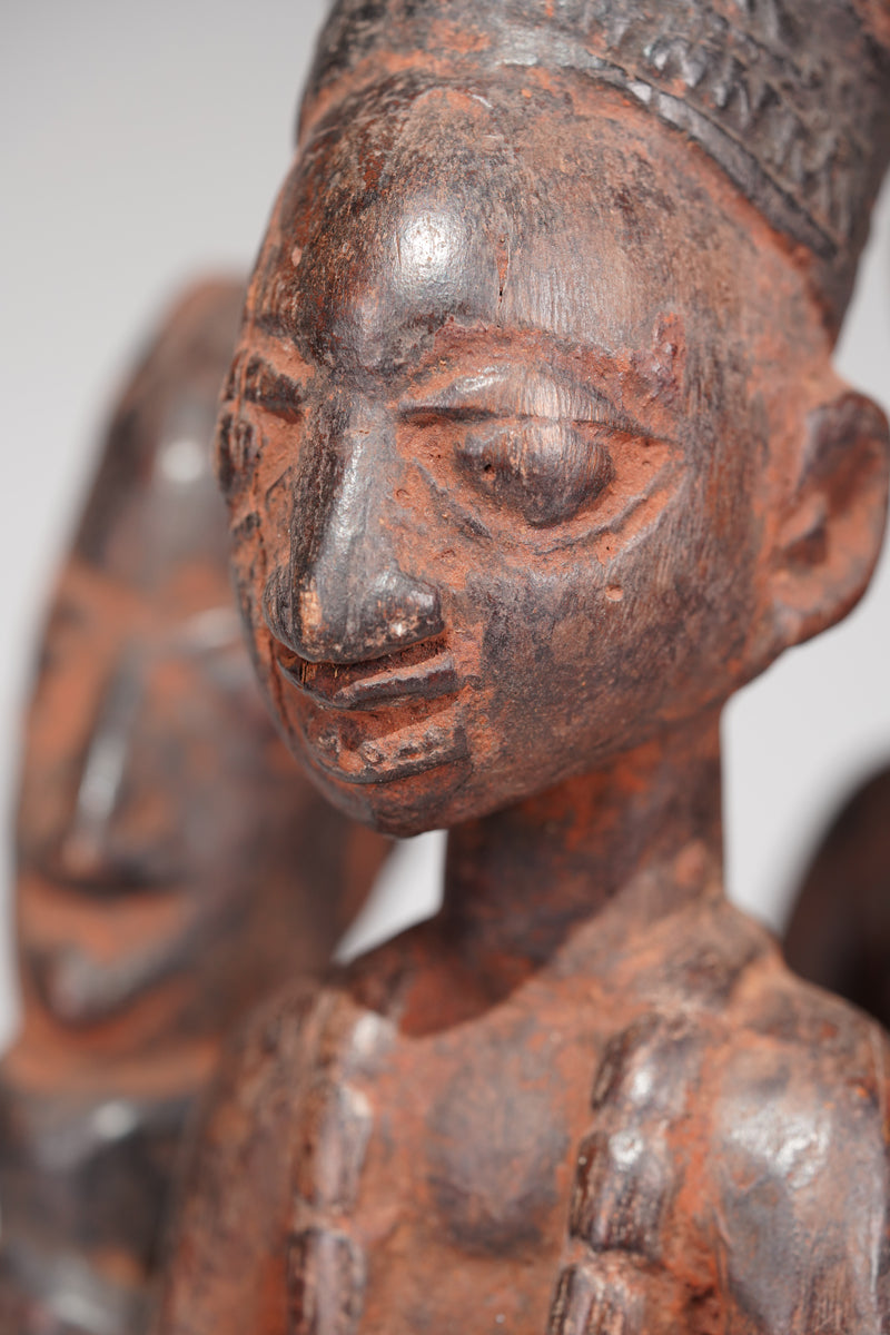 The sculpture has been in the possession of a family in England since the day it was brought by the present owner’s great uncle, Edwin Holland, from Nigeria. Holland was a Sergeant in the British Army, and was an engineer whose specific skill was telegraphic work. He was appointed Assistant Superintendent for Telegraphs in Nigeria (later Posts and Telegraphs, Southern Provinces) on January 10, 1912 and remained in that position until 1919, when he returned to England. He died in 1929, at which time the sculpture came into the possession of the cousin of the present owner, from whom it was received. It has never been out of the family. This clearly suggests that the carving may be dated between 1910 and 1918, especially if it is the case, as suggested above, that this is the earliest of the three sculptures."