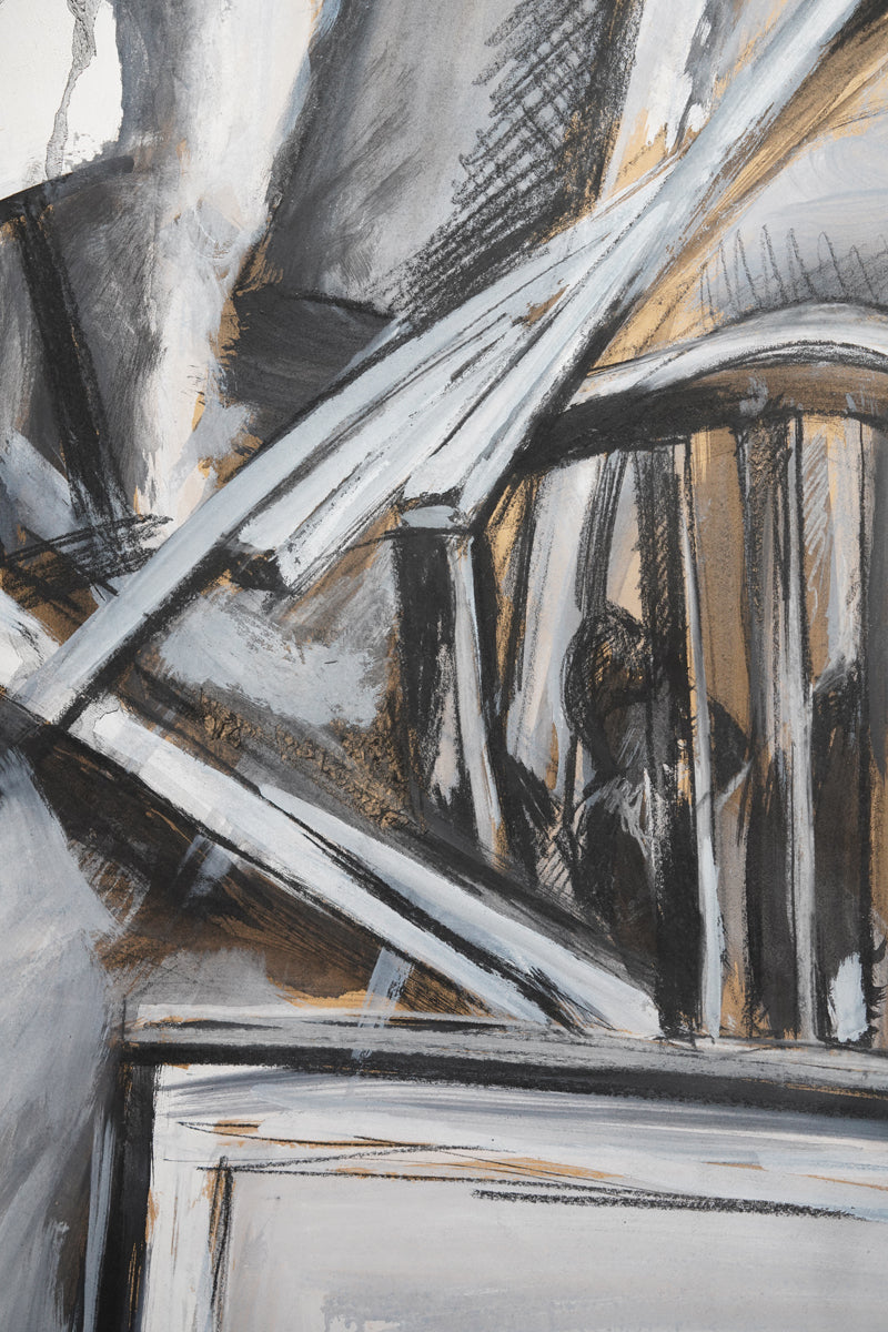 Irena Klonek's use of white gouache paints brings plains of stillness to this abstract still life sketch, inviting viewers to interpret and appreciate the dynamic interplay of shapes and dynamism within this captivating and enigmatic scene.