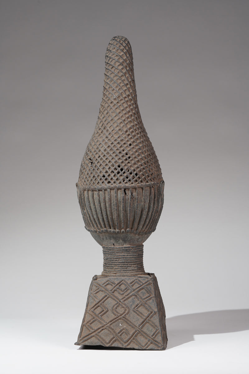 The piled coral headdress is an important attribute of the so-called Queen Mother. The name supposedly goes back to Oba Esigie, who ruled until 1550. He is said to have given his mother Idia the title Iyoba ( Queen Mother) out of gratitude and respect and introduced this style of representation. Since Esigie, any Oba could have given this official title to the mother three years after his enthronement.